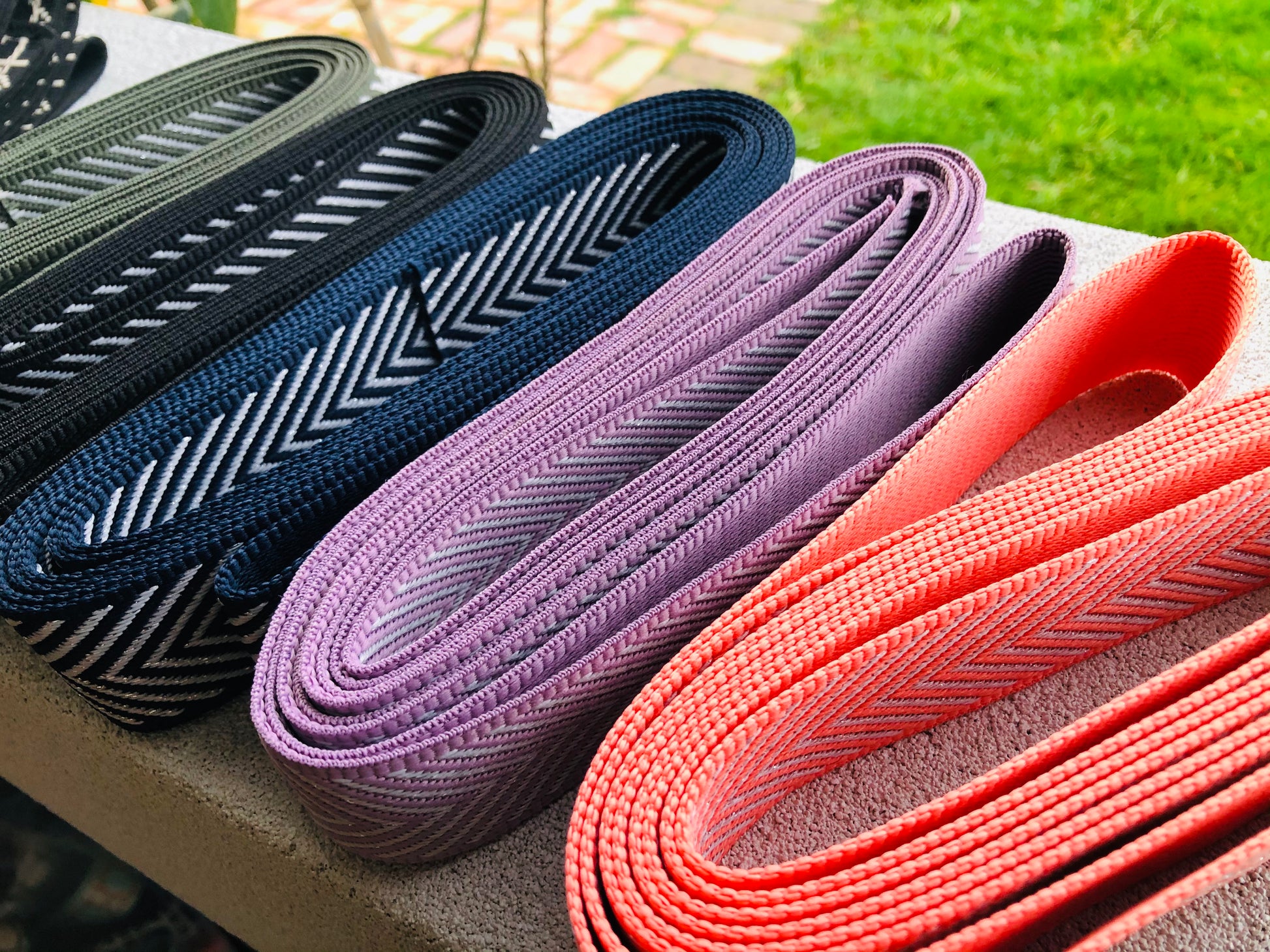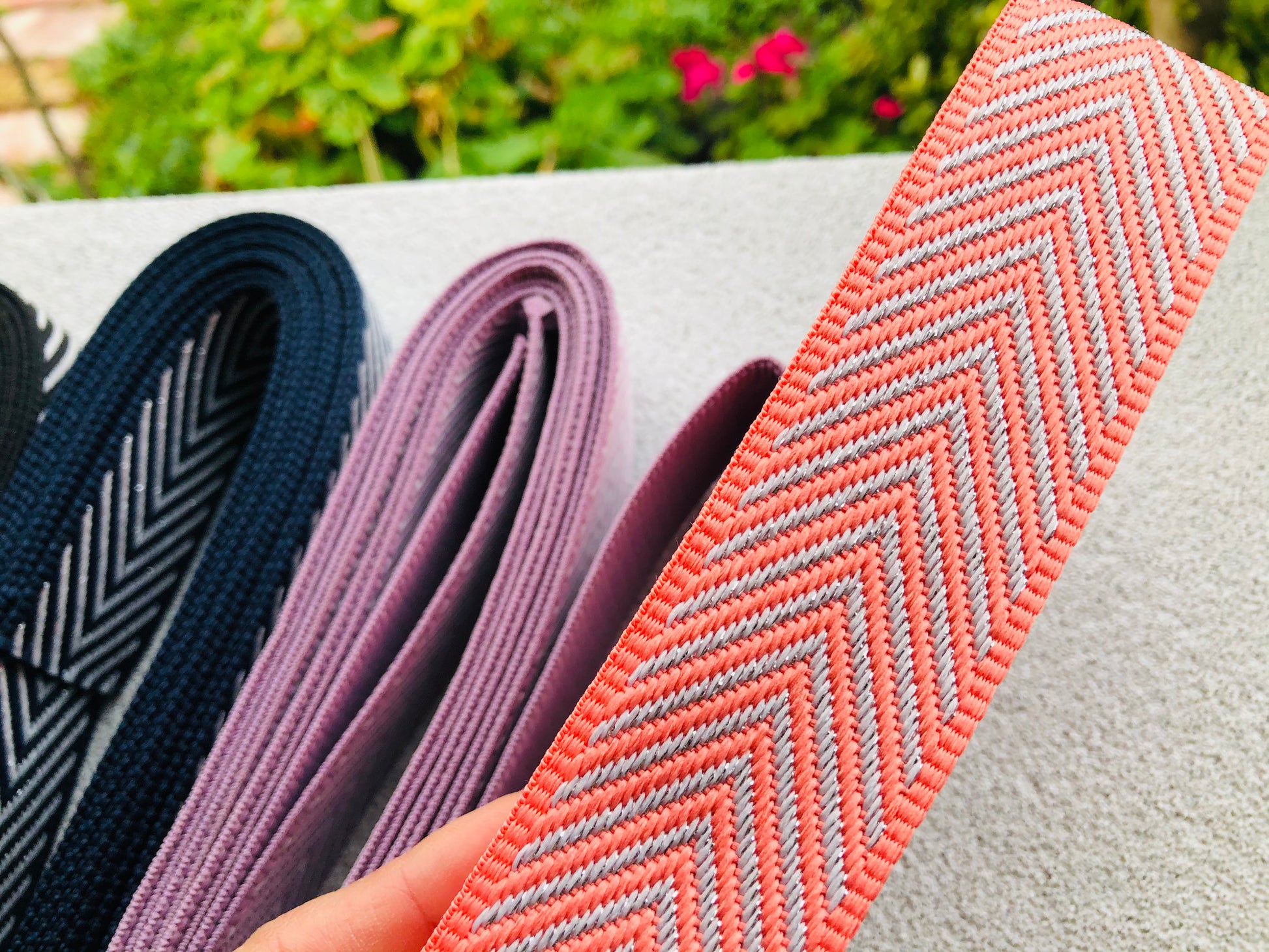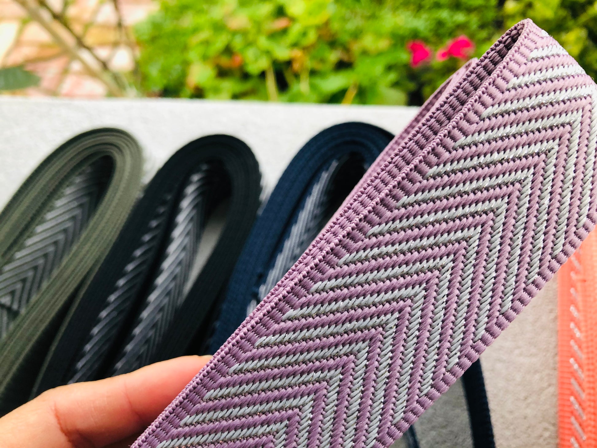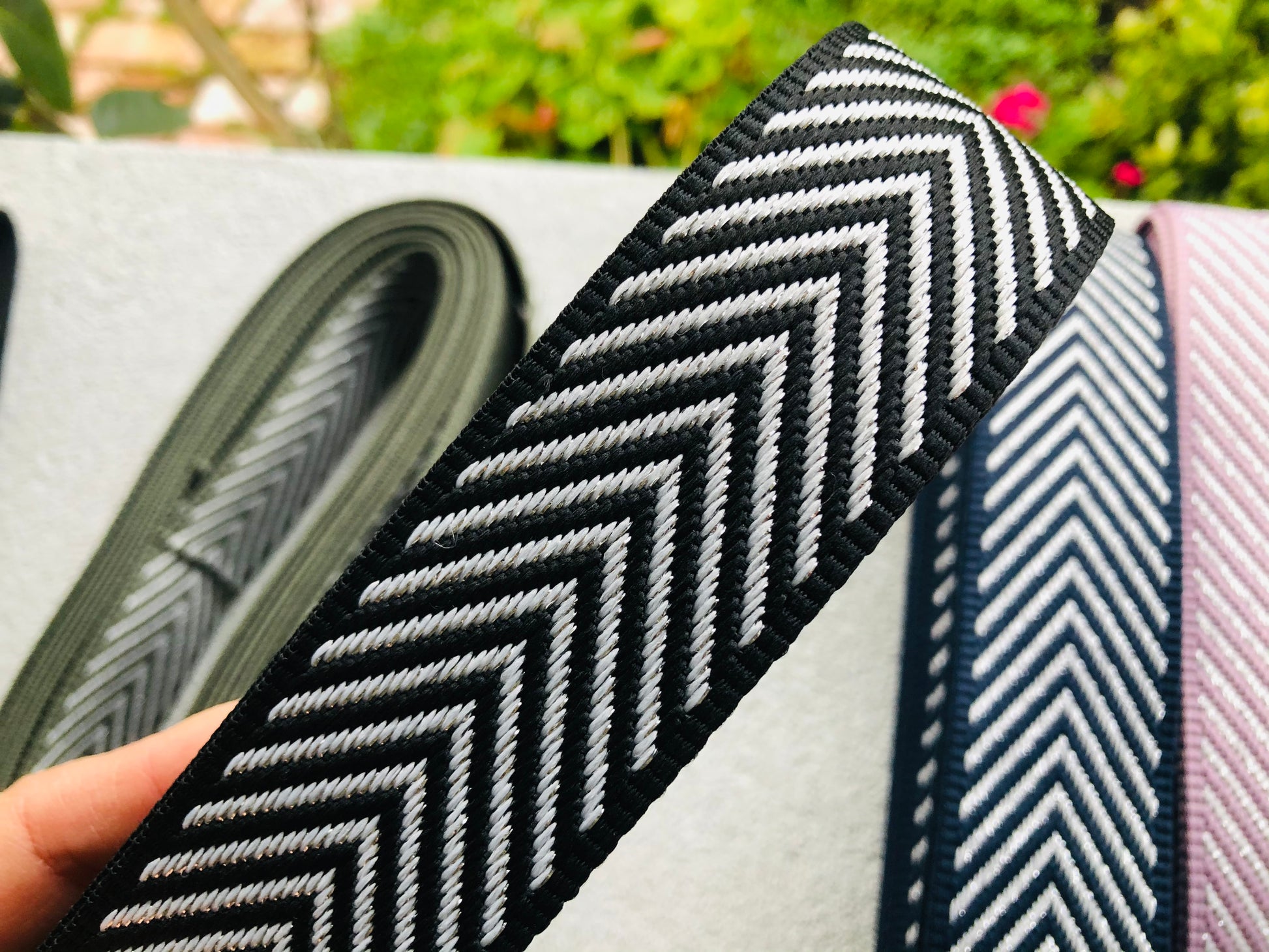 Premium quality webbing woven with metallic threads. Looks shiny in direct light.