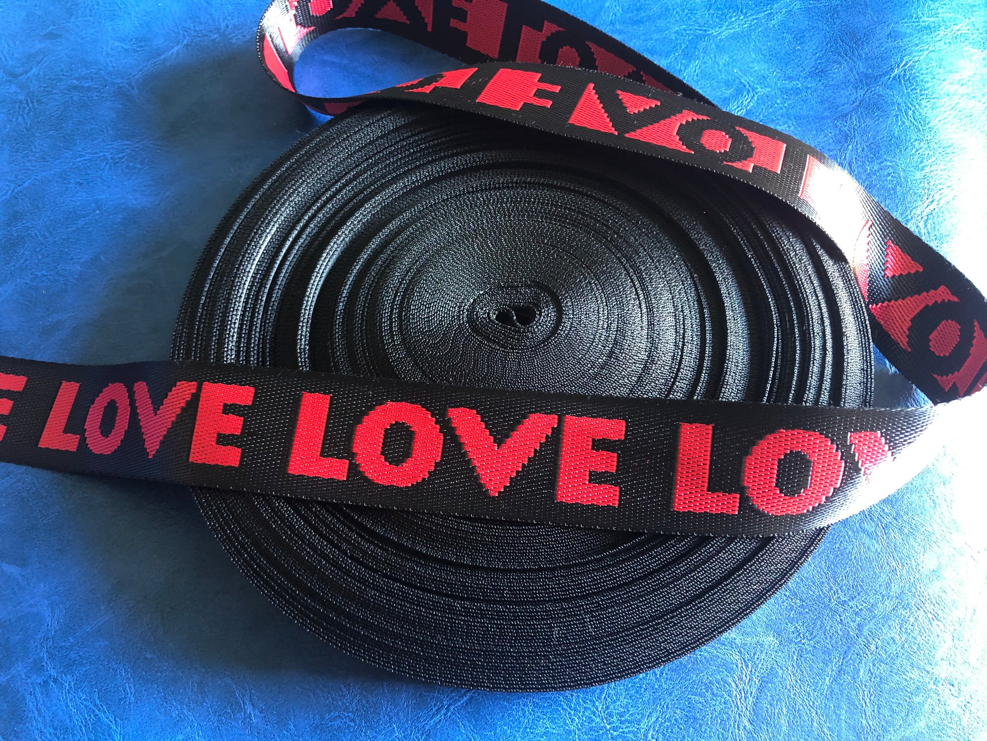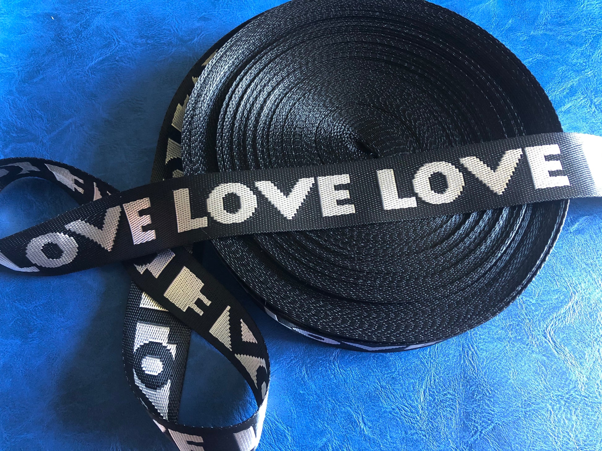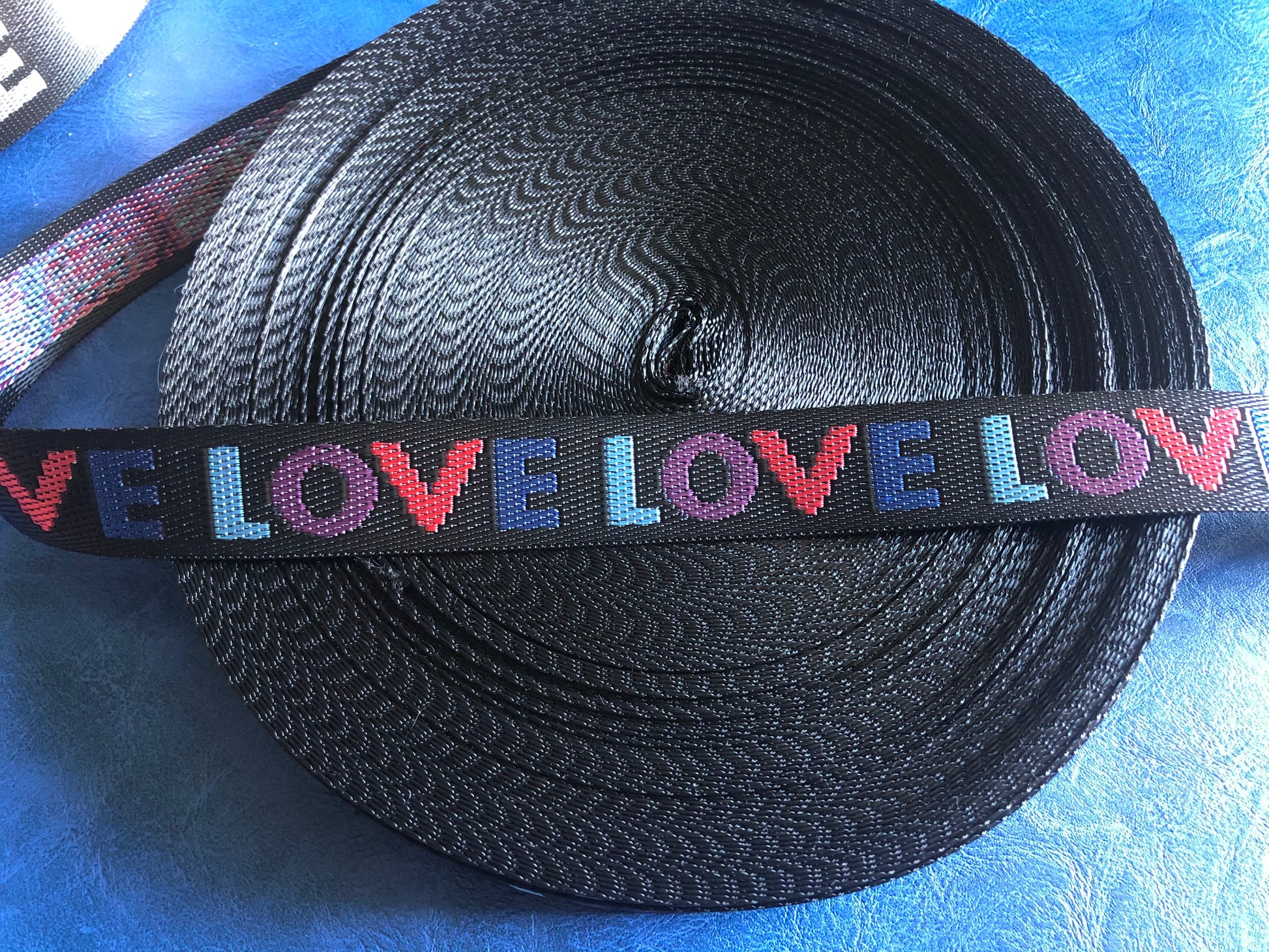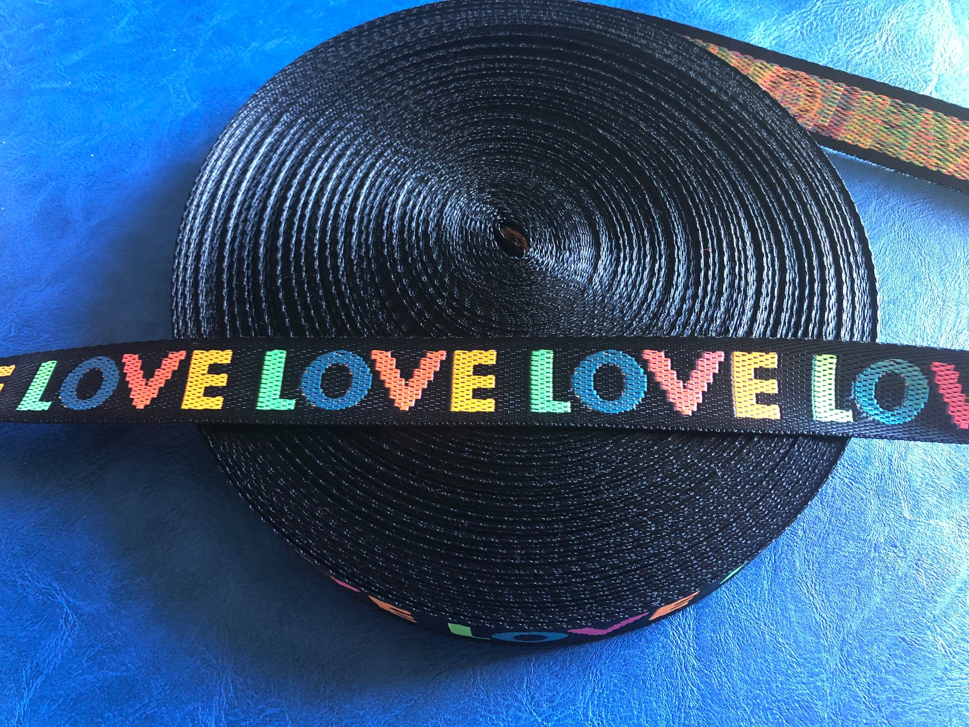 3m of Rainbow webbing, LOVE pattern webbing - 2.5 & 3.8cm DWS