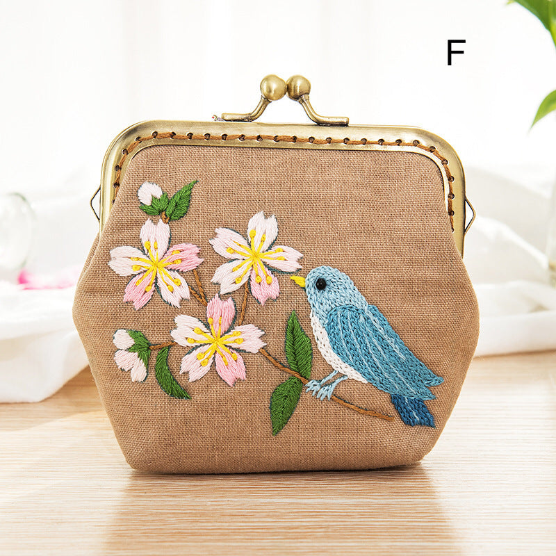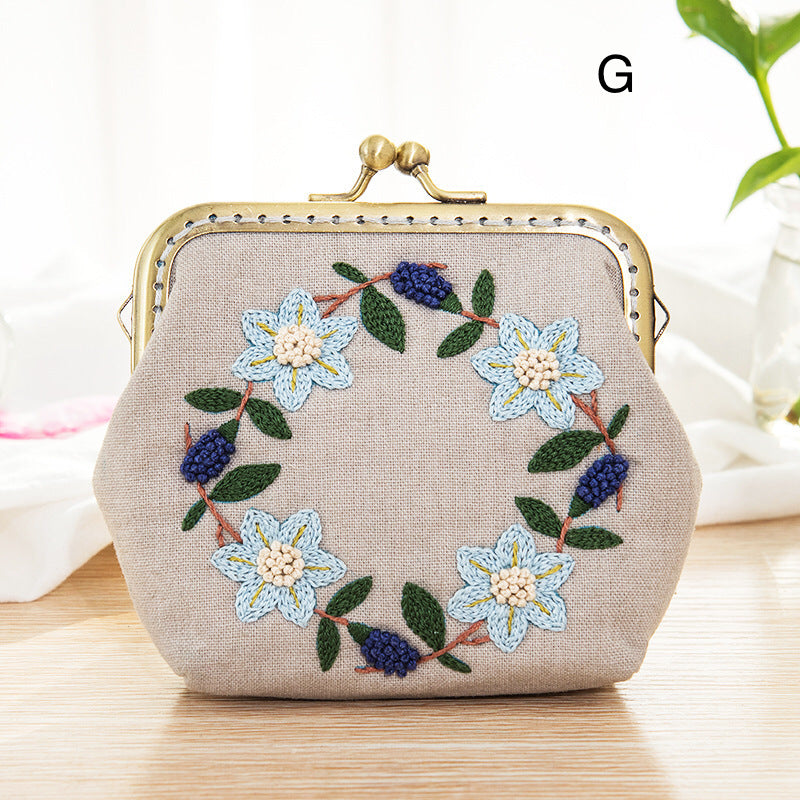 Floral kiss lock purse kits, embroidery and bag making kits for beginners G1-2