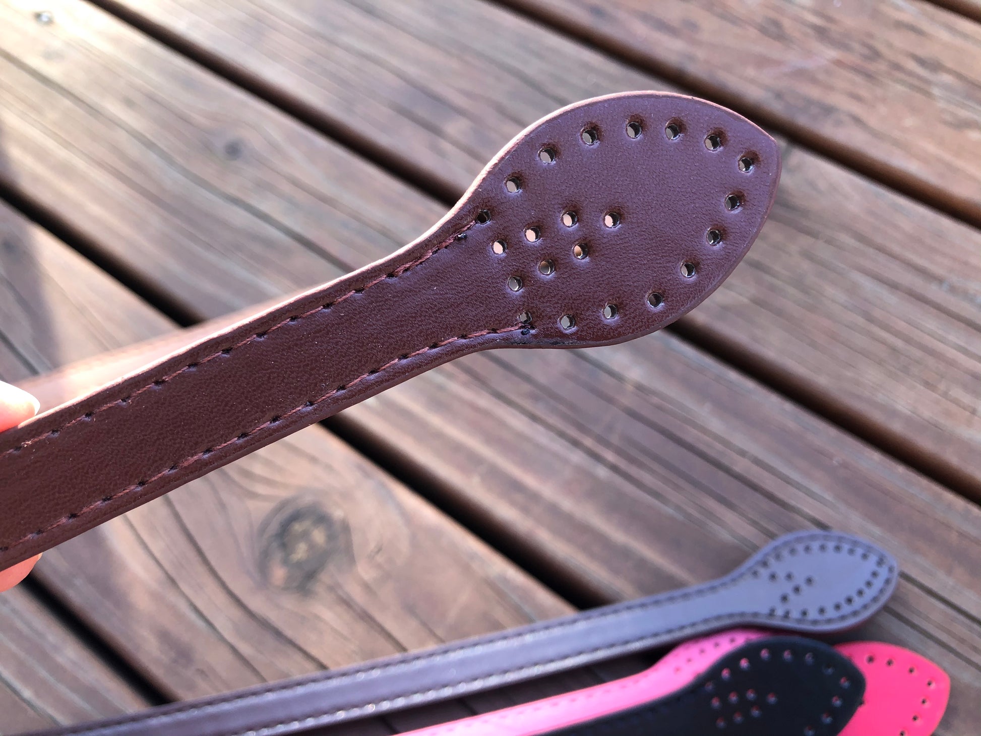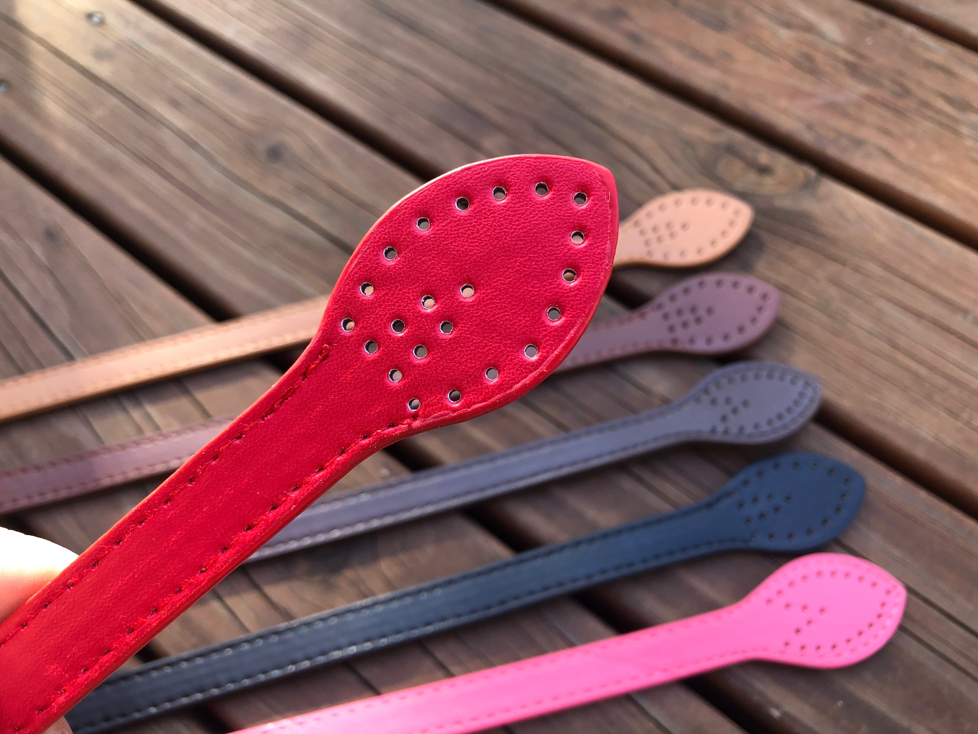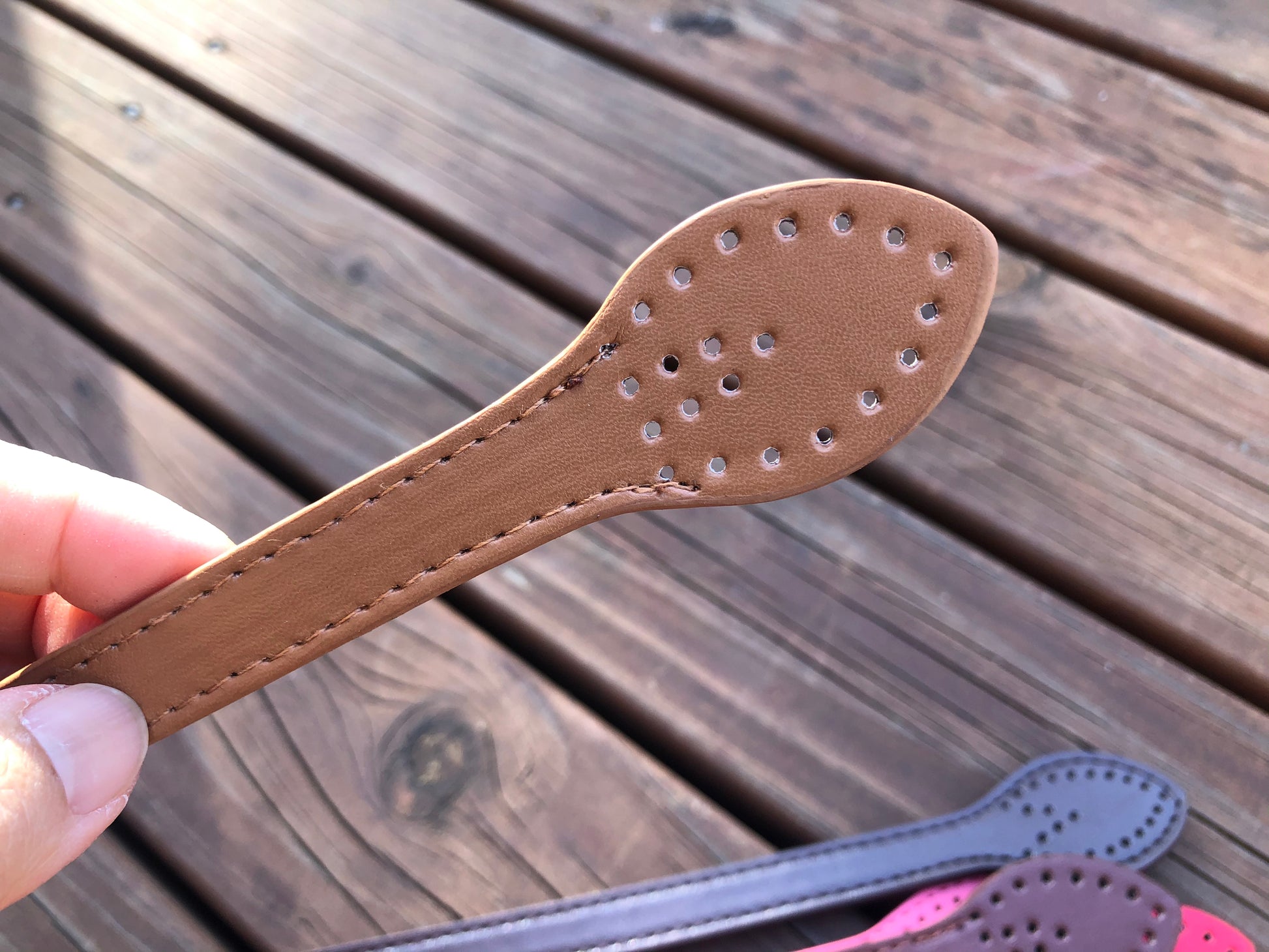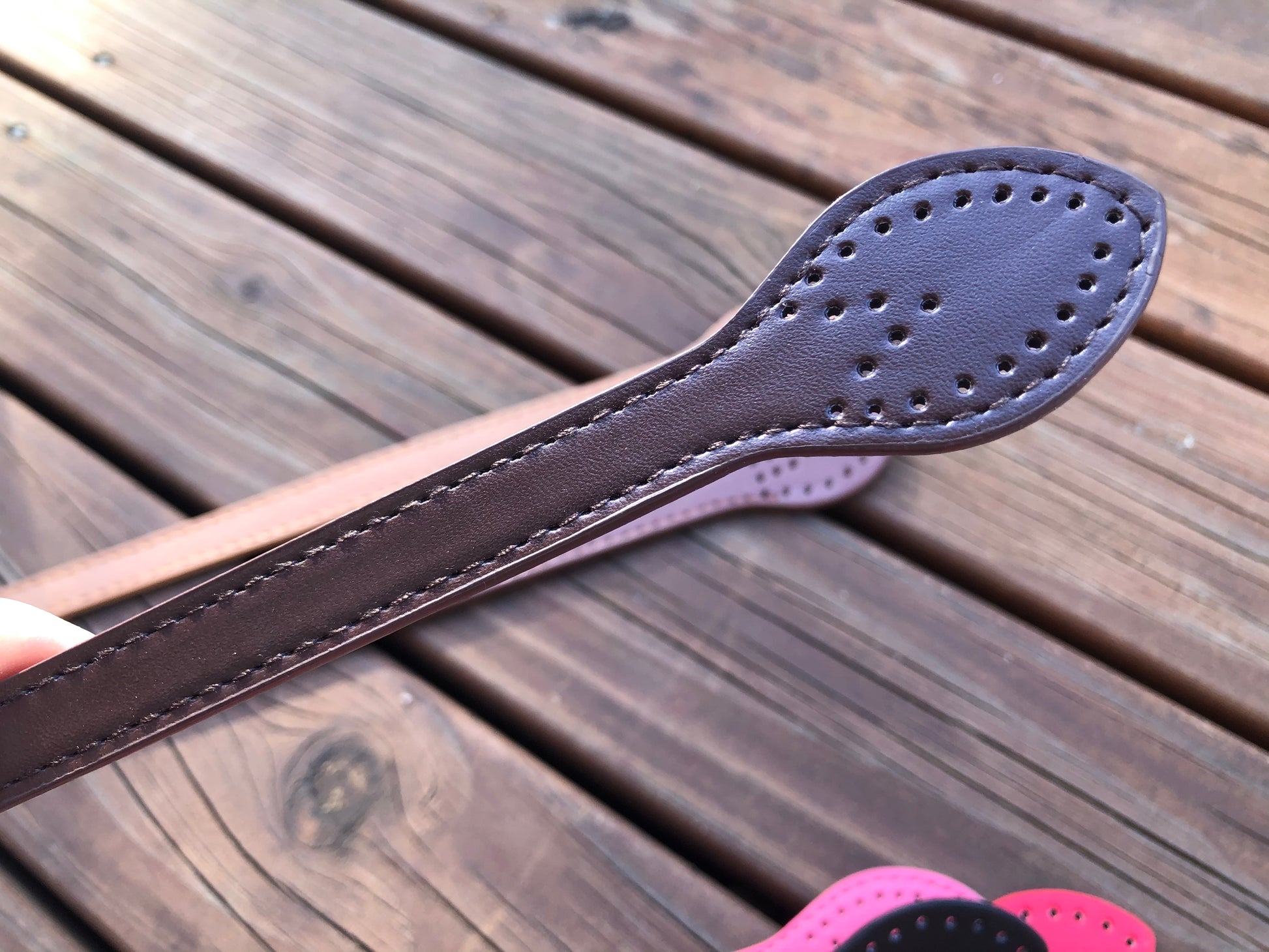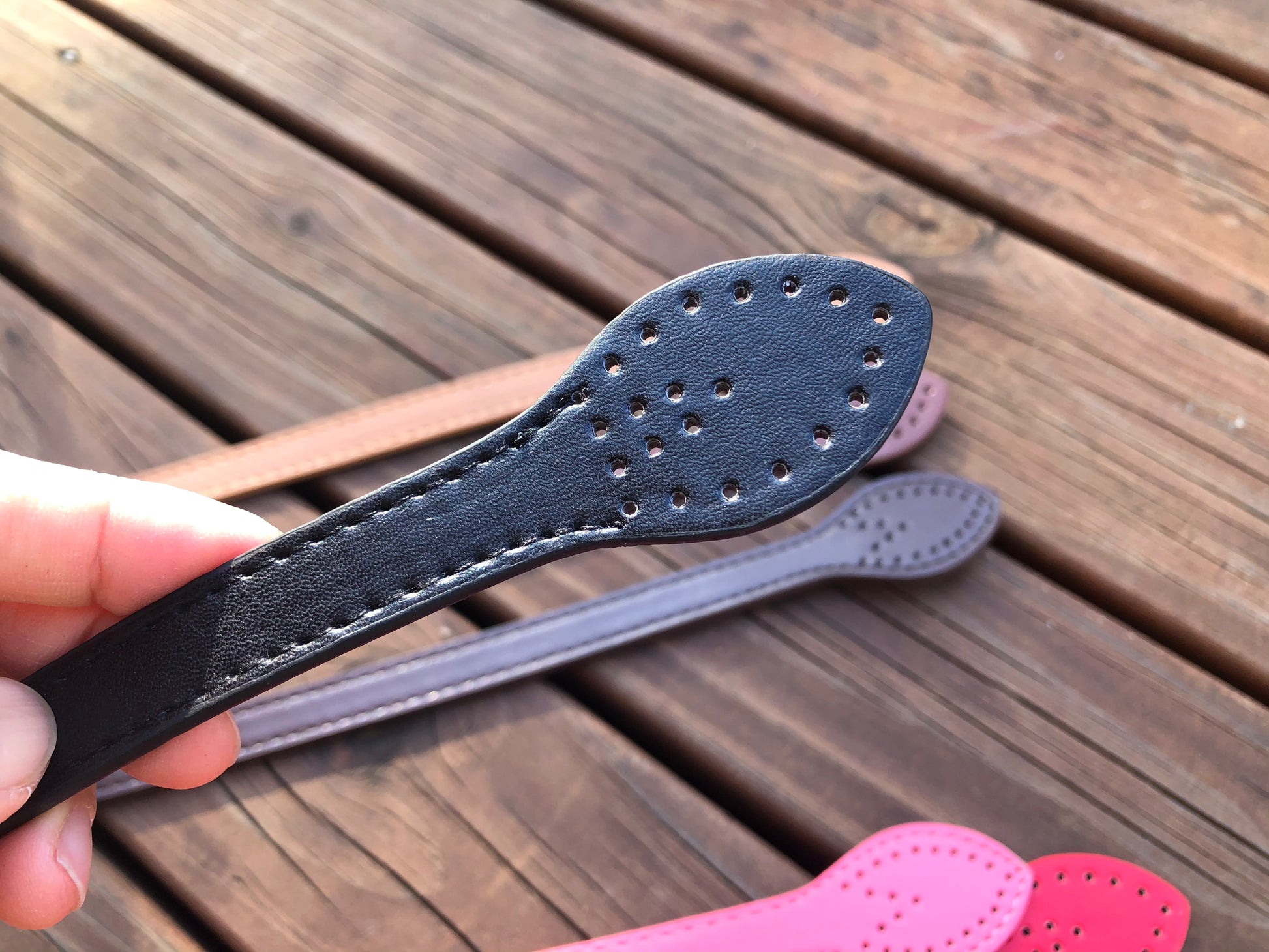 Leaf shape PU leather straps, hand sew style handles G3