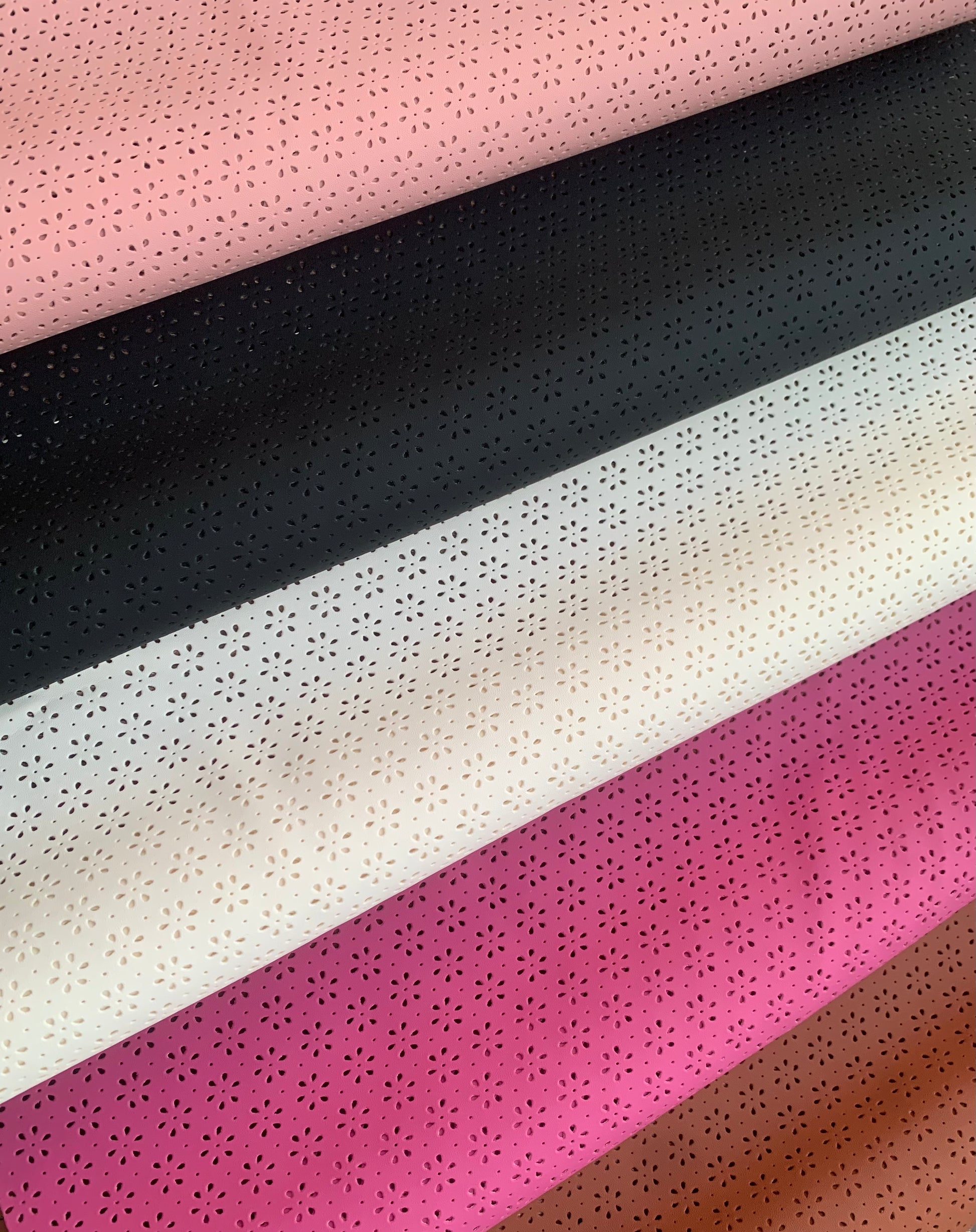 Laser perforated vinyl, laser pattern synthetic leather, soft faux leather E4