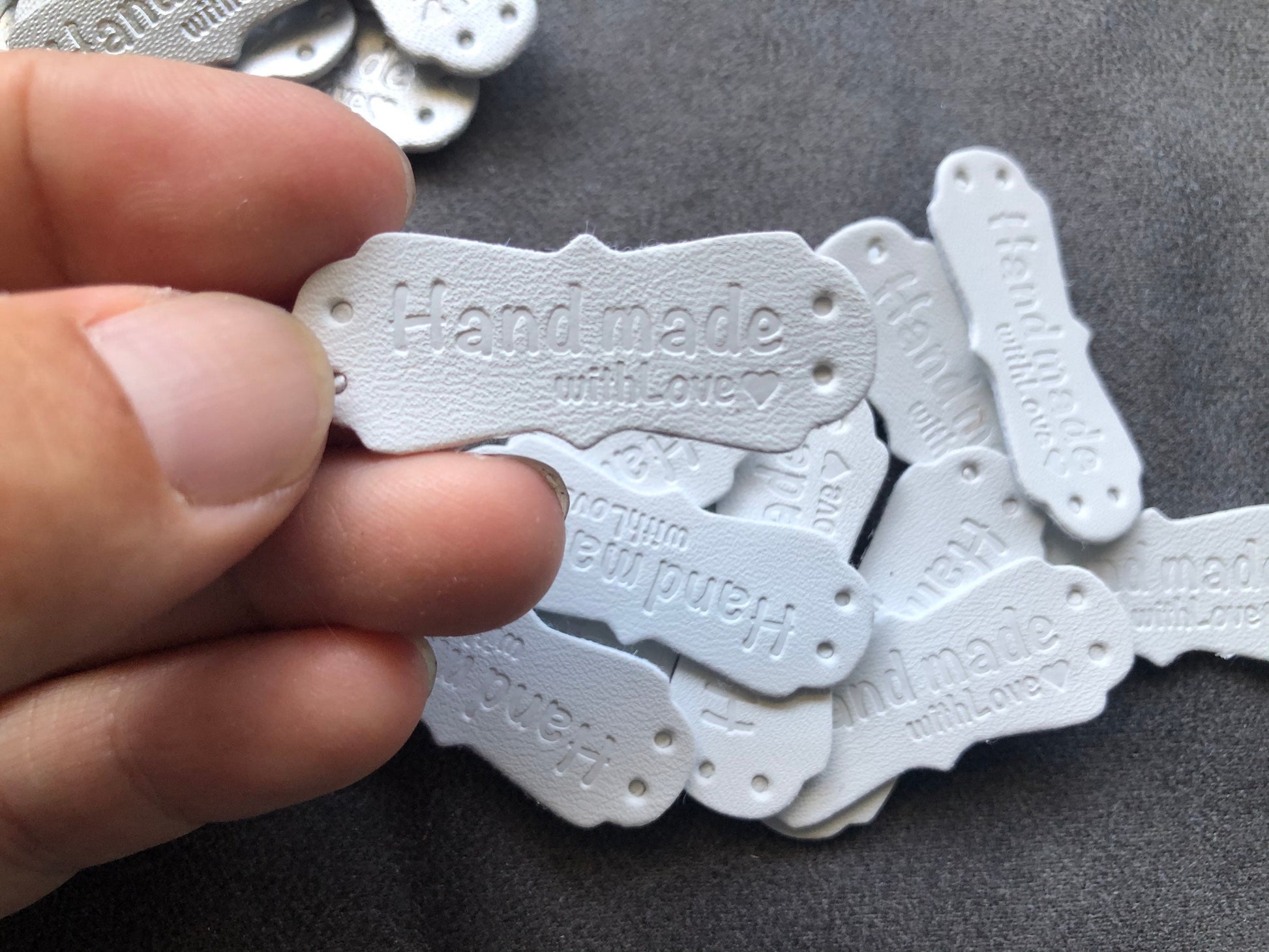“Handmade with love” ❤️ PU leather labels in 5 different colors