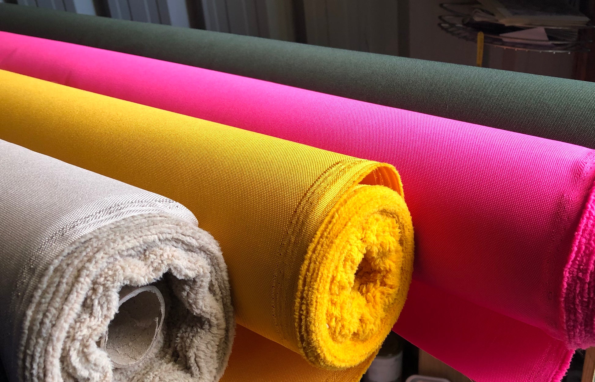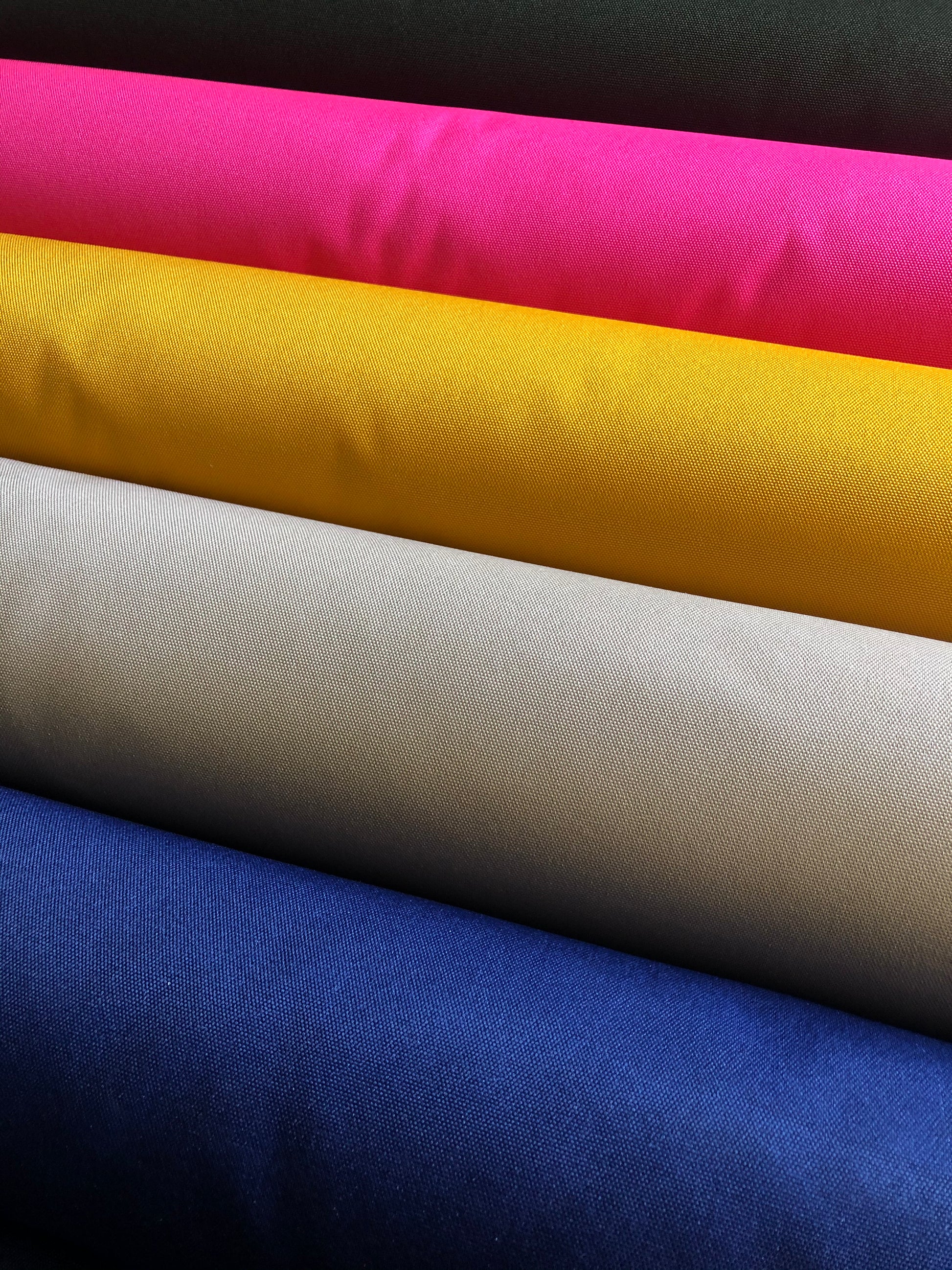 Recycled waterproof canvas made with used water bottles. Sustainable and environmental friendly.