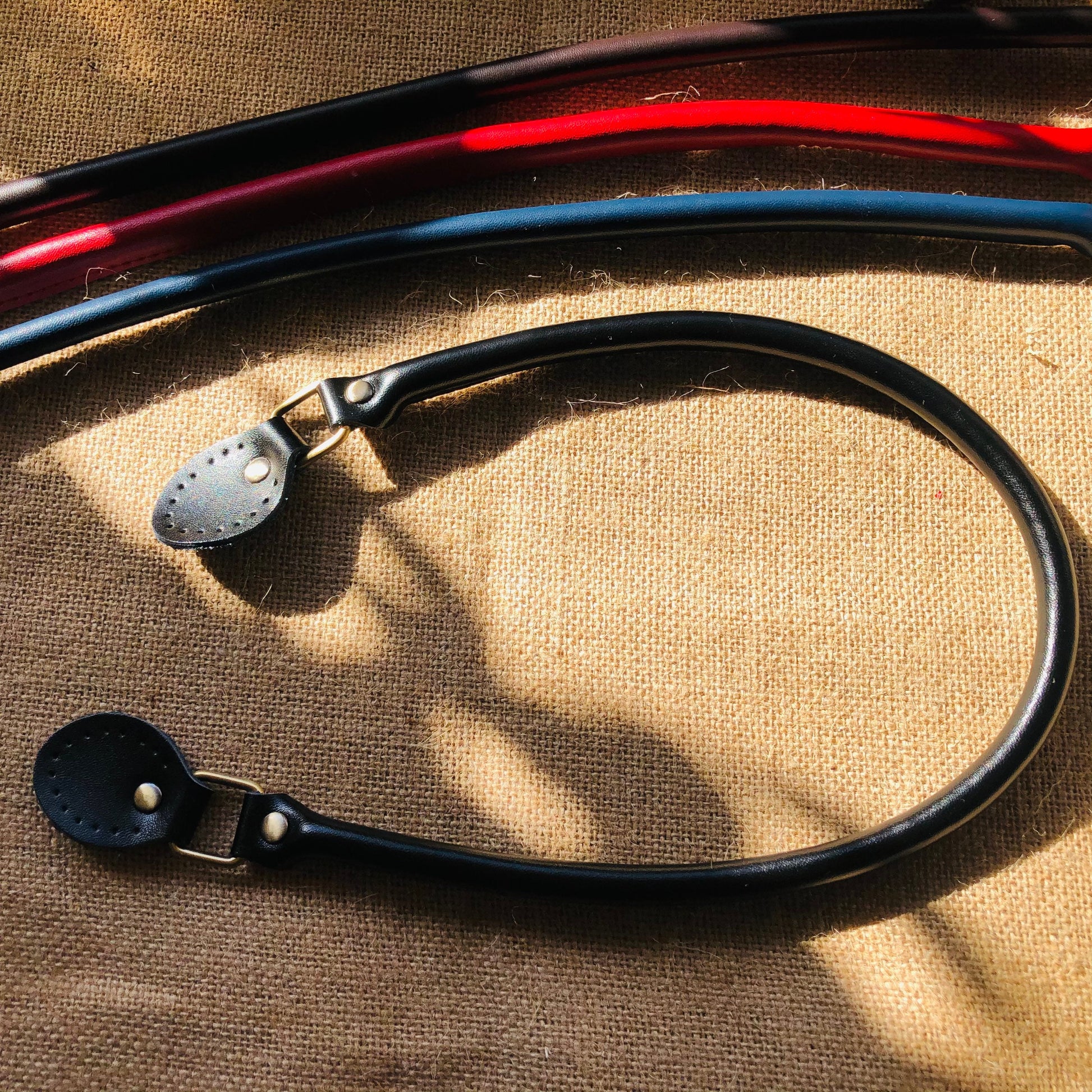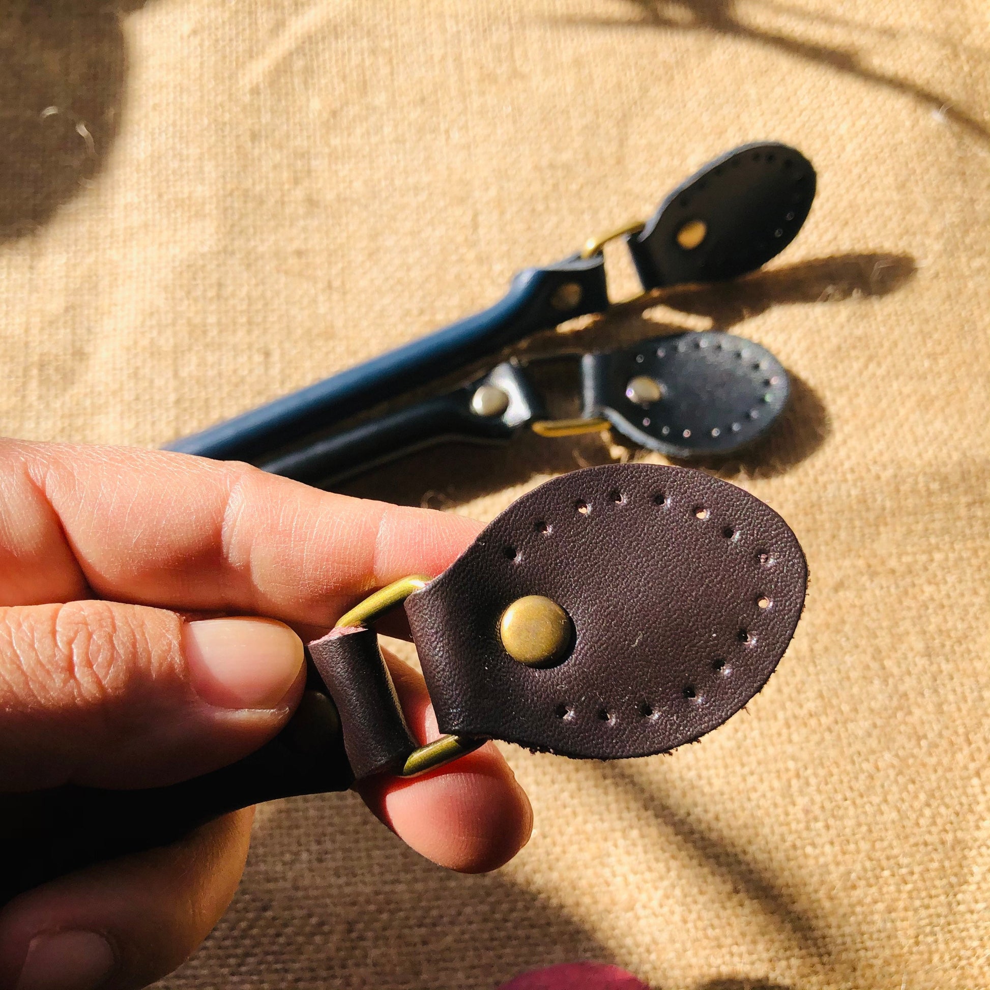 Round leather straps with pre-punched holes on the ends for easy sewing.