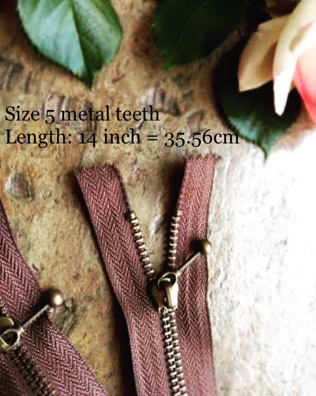 Color: Antique brass metal teeth, dark brown tape